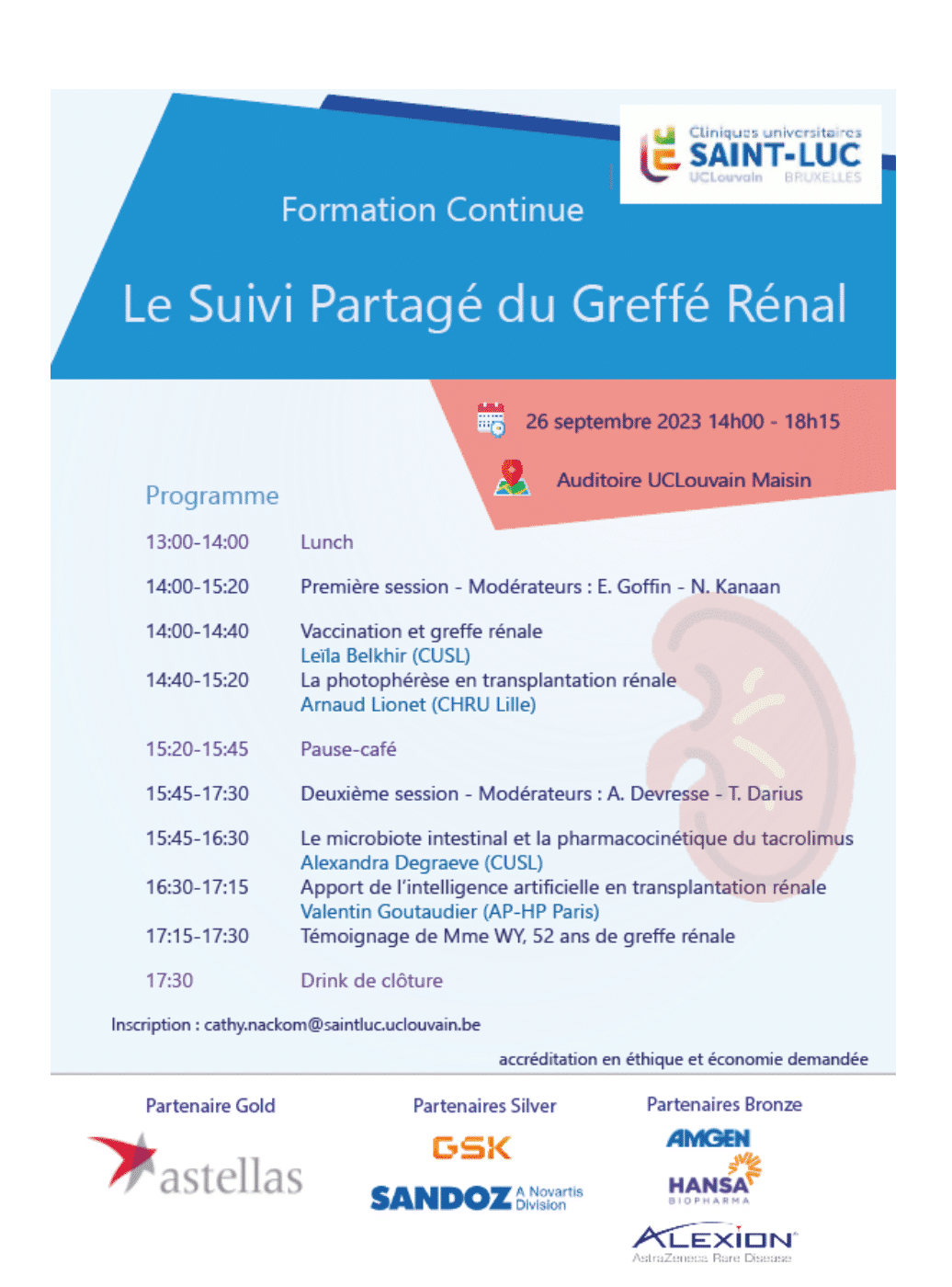 Le suivi partagé du greffé rénal + Ajouter à Google Calendar + iCal / Outlook export Date Sep 26 2023 Terminé! Heure 14:00 - 18:15 Catégories réunion présentielle commune GNFB/BVN Partager cet événement