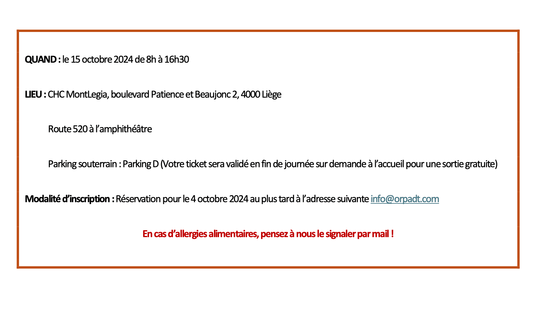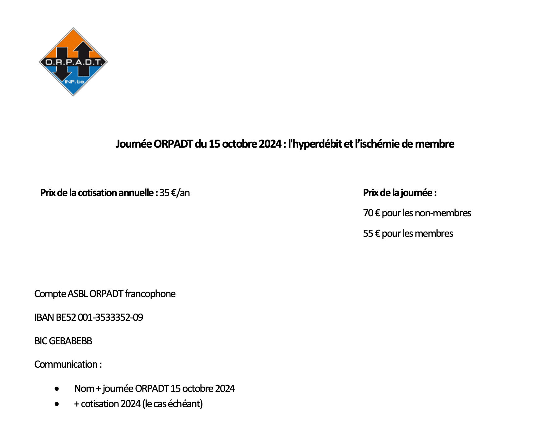 3Sep2024 Author Jean-Marc Desmet Categories Associations, Formations 0 comment Cette journée se tiendra au Mont Légia le 15 Octobre 2024 Lien PDF ci dessous Programme Journée ORPADT du 15-10-2024 (1) Partager PreviousNext Laisser un commentaire Annuler la réponse.Your email address will not be published. CommentYou may use these <abbr title="HyperText Markup Language">HTML</abbr> tags and attributes: <a href="" title=""> <abbr title=""> <acronym title=""> <b> <blockquote cite=""> <cite> <code> <del datetime=""> <em> <i> <q cite=""> <s> <strike> <strong> Name * Email * Website Enregistrer mon nom, mon e-mail et mon site web dans le navigateur pour mon prochain commentaire. Δ